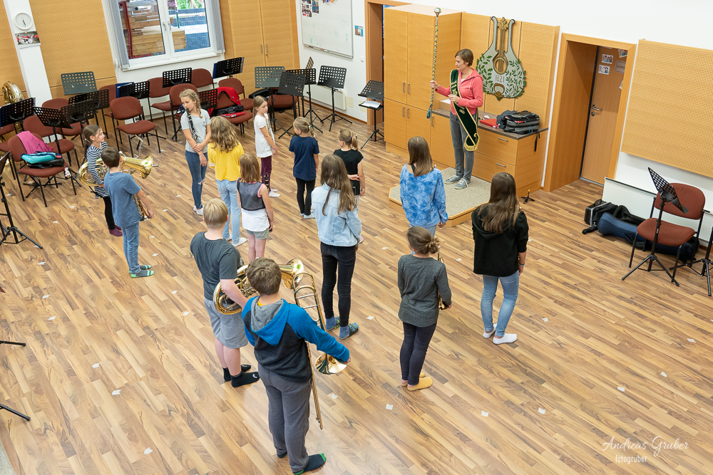 Unser musikalischer Nachwuchs probte unter Stabführerin Michaela die ersten Schritte und wichtigsten Regeln fürs Marschieren in der Kapelle.Unter Beisein von Obfrau Sabine Brandner trafen sich die Kids im Musikheim. Aufgrund leichten Regens übten die eifrigen Jungmusiker zuerst noch im inneren des Probenlokales. Doch das Wetter hatte einsehen. So konnten noch mit jeder Menge Spaß die ersten Runden in Formation am Vorplatz trainiert werden.Beim großen Streifzug des Musikvereines am kommenden Samstag durch das Dorf schnuppern die Kids mit uns Großen mit und es heißt dann für alle, im Schritt Marsch!