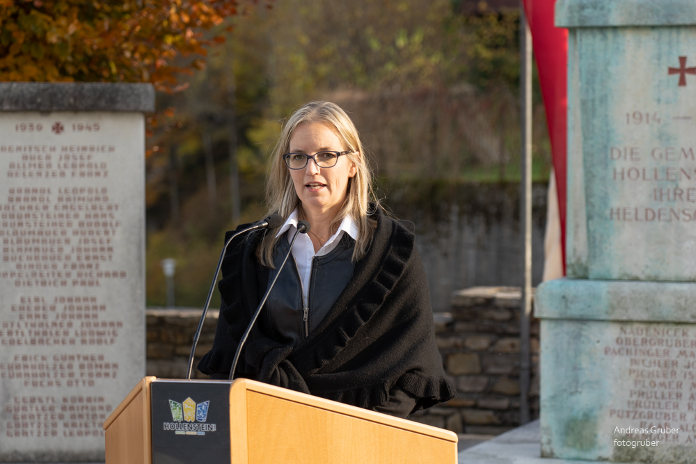 Die Gemeindeführung mit den Vertretern der Blaulichtorganisationen und der Vereine holten wir vom Rathaus ab und geleiteten sie zum eigentlichen Gedenkakt beim Kriegerdenkmal. anschließend zur Segnung der Gräber am Friedhof.