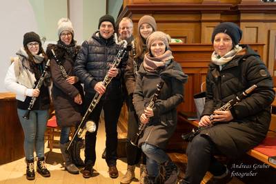 Wir, das Klarinetten-Ensemble, gestalteten die Heilige Messe. Wir spielten die „Pöhamer-Musikantenmesse“ von Mathias Rauch im Holzbläserarrangement. Im Anschluss der Messe führten wir noch „Santa Claus is comin´ to Town“ auf. Hubert hat uns dankenswerterweise mit der kleinen Trommel begleitet. Mit dem stimmungsvollen Stück „Weihnachts-Boarischer“ haben wir dann unseren kirchlichen Auftritt beendet. Für uns war es eine besondere Freude und Ehre, dass wir im Advent eine Heilige Messe gestalten durften.
