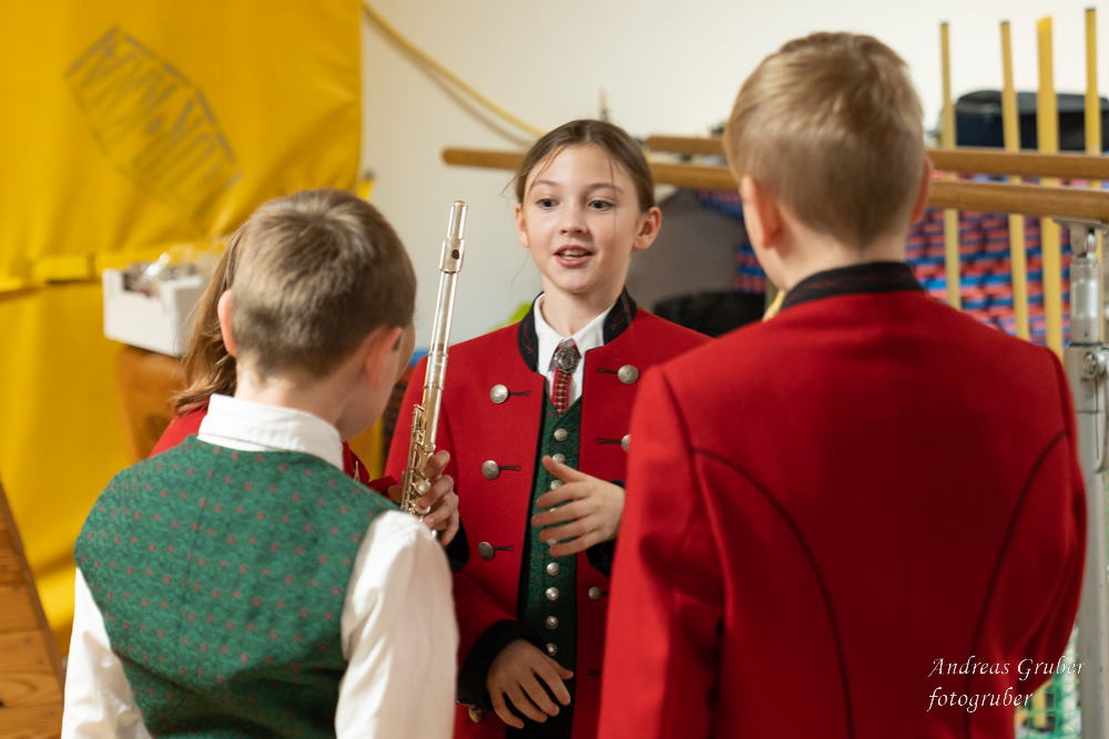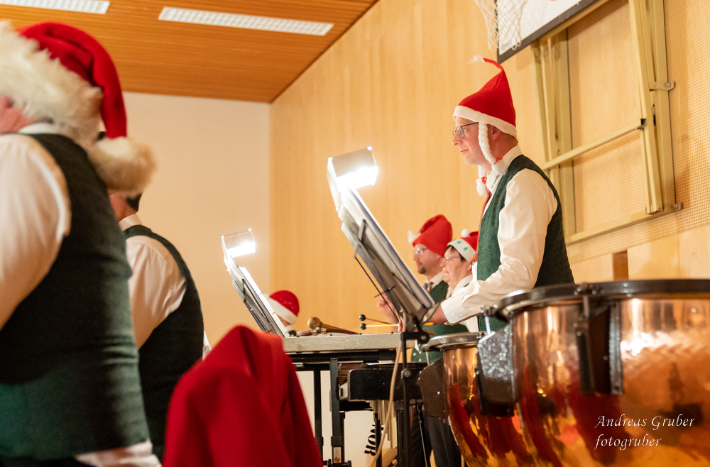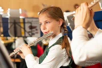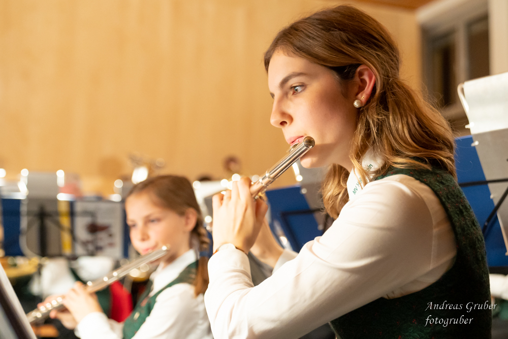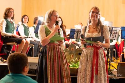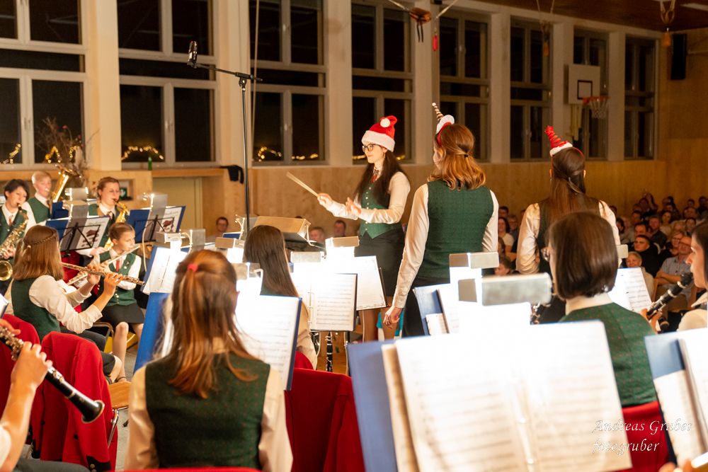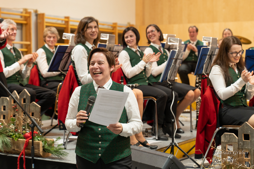 Mit "Carmina Burana" einem überaus imposanten Werk von Karl Orff starteten wir zu unserem traditionellem Termin ins Weihnachtskonzert. Geleitet von David und Ina boten wir herrliche Kompositionen aus vielen Bereichen der Musik. Unsere beiden Wertungsstücke "Monumentum" und "Enjoy the Music", mit denen wir bei der heurigen Konzertwertung einen großartigen Erfolg einspielten, gehörten natürlich dazu. Ina führte uns über den Atlantik zuerst nach Nordamerika mit "Der mit dem Wolf tanzt" in die unendlichen Weiten der Prärie. Mit "Gabriel´ s Oboe", von Ina für Klarinette arrangiert, ging unsere Reise solistisch nach Südamerika. Unser Posaunenquartett holte das Publikum aus der Pause zurück zum begeisternden Auftritt unseres Jugendorchesters. Der "Kaiserin Sissi Marsch" eröffnete den zweiten Teil unseres Konzertabends. Mit der überaus flotten "Fanynka Polka" besuchten wir unsere böhmisch-mährischen Nachbarn. Danach flanierten wir genüsslich mit "Les Champs Elysees" über die Pariser Prachtstraße. Mit dem aktuellen Hit "Merry Christmas" gesungen von unseren Flötistinnen Tina und Carina und arrangiert von Kapellmeister David beendeten wir unser Konzert. Als Zugabe hatten wir "Best of Mark Forster", ebenfalls von David für uns arrangiert, vorbereitet. Mit einem kräftigen "Prosit Neujahr" und dem "Radetzky Marsch" war es dann leider schon vorbei. Ein herzliches Dankeschön an alle, die uns fürs Gelingen unseres Konzertes unterstützt haben. Ein riesiges Danke an unser Publikum für euer Kommen und euren großartigen Applaus!