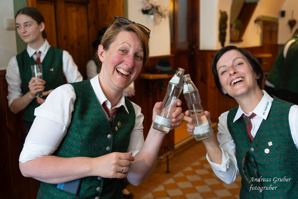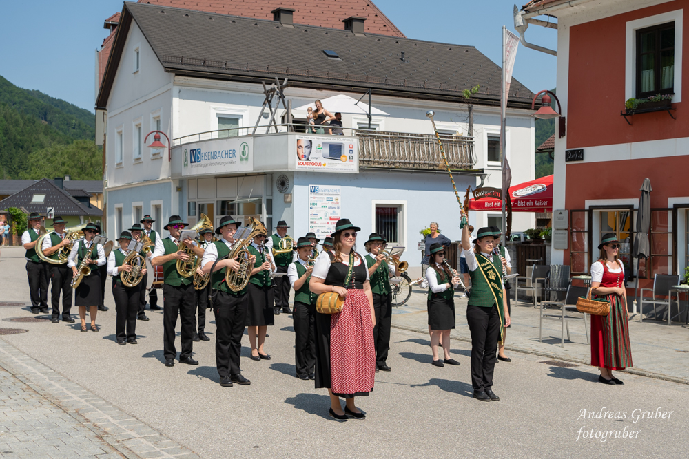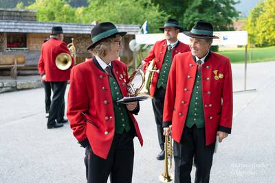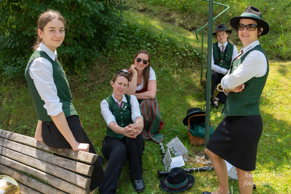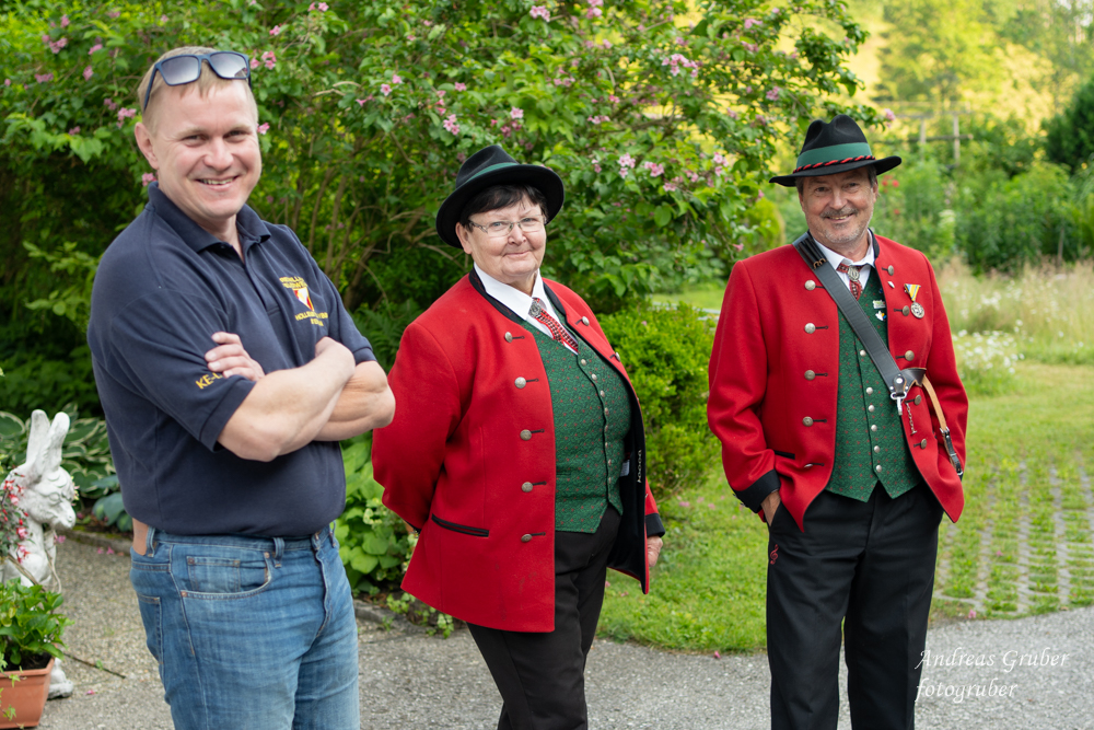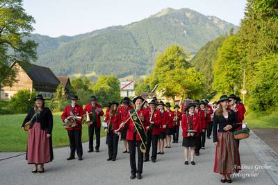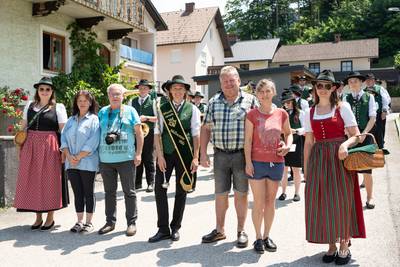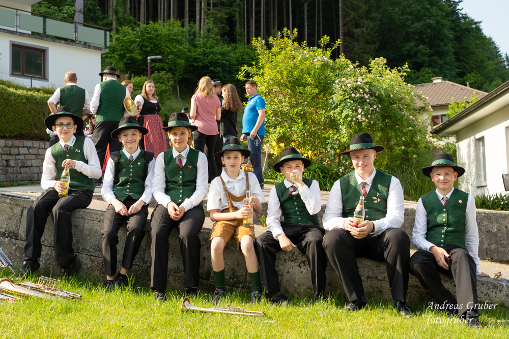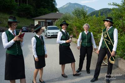 Mit flotter Marschmusik weckten wir das Dorf auf. Am frühen Morgen freuten wir uns über die Einladung zum Frühstück. Franz Irninger und sein Team verwöhnten uns im Gasthaus Dornleiten – Dorfstube mit einem kräftigen Frühstück. Gut gestärkt gings anschließend auf den kilometerlangen Weg durch die Gemeinde. Unser Ziel war die Einladung zum Mittagessen bei Franziska und Andreas Kronsteiner. Zwischendurch gab es zahlreiche Halts mit willkommenen Erfrischungen. Wir bedanken uns bei Familie Hubert Mandl und Josef Schnabler für die erste Rast. Eine kurze Pause gönnten wir uns bei Maria Anna Jagersberger und Ernst Fohringer. Bgm. Manuela Zebenholzer freute sich mit ihrer Familie über unseren morgendlichen musikalischen Besuch. Bei unserer Klarinettistin Barbara gabs eine Einladung auf Getränke. Ein großer Dank von uns Musikanten gilt Martina und Max Geyerlechner. Hier gab es neben den kühlen Erfrischungen auch eine kräftige Jause. Beim Dorfplatzwirt Dominik Fellner Gasthaus Osterberger durften wir natürlich nicht vorbeimarschieren. Eine überaus willkommene Rast in der kühlen Gaststube. Den vorletzten Stopp gabs dann bei Vizebgm. Walter Holzknecht und unserm ehemaligen Kapellmeister Christian Gruber. Der Musikverein, allen voran Obfraustv. Herbert Schenk und Stabführerin Michaela Steineck, danken für die herzliche Bewirtung und die großartige Unterstützung beim traditionellen Weckruf. Ein großes Danke auch an unsere Feuerwehr für die Begleitung bei unserem Marsch.