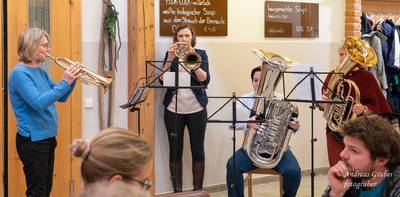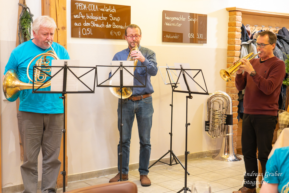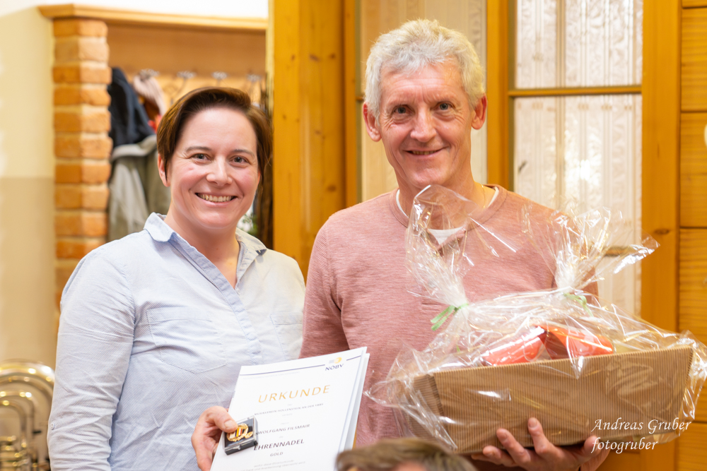 Unsere sechs Marketenderinnen überraschten uns anlässlich der 203. Jahreshauptversammlung mit einem coolen und unterhaltsam getexteten Song. Obfrau Sabine begrüßte im Gasthof Jagersberger uns Aktiven, sowie auch unterstützende Mitglieder. Unsere Schriftführerin Christina ließ uns das abgelaufene, auftrittsintensive Jahr Revue passieren. Kapellmeister David blickte auf ein musikalisch erfolgreiches Jahr zurück. David betonte, dass die Kapelle musikalisch immer besser werde. Einen wesentlichen Beitrag dafür bringen neben der konzentrierten Probenarbeit auch zahlreiche kleine Ensembles, welche sich in den letzten Jahren innerhalb des Vereines formiert haben. David ließ mit der Ankündigung aufhorchen, bei der heurigen Konzertwertung in Stufe C anzutreten. Sabine gab einen Ausblick auf Ausrückungen und Seminare im kommenden Jahr: „Auch wenn wir heuer vorhaben weniger oft aufzutreten, langweilig wird es bestimmt nicht“. Sabine dankte der Kapelle für den super Zusammenhalt und auch ihrem Team im Vorstand, welches zahlreiche Aufgaben übernommen hat und sie dadurch dementsprechend sehr gut entlastete. Ein großer Dank erging an Patricia Sonnleithner, Lukas Mitterhauser und Wolfgang Filsmair, welche aus dem Vorstand des Musikvereines zurücktraten. Sabine überreichte Wolfgang für seine Jahrzehnte lange zuverlässige Arbeit im Vorstand und als gewissenhafter Archivar die goldene Ehrennadel des NÖ Blasmusikverbandes. Bgm. Manuela Zebenholzer zeigte gegenüber der Musik große Wertschätzung und dankte für viele Highlights, wie den gemeinsamen Ausflug zur Partnergemeinde Siegenburg: „Ich bin gerne bei euch und blicke mit großer Freude auf ein neues musikalisches Jahr“. Die Generalversammlung umrahmten unsere kleinen Ensembles.