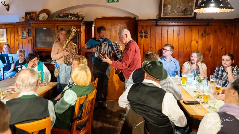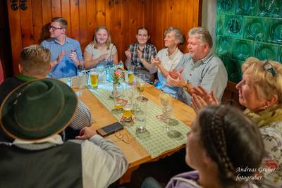 Anlässlich des Besuches aus der Partnergemeinde Siegenburg in Bayern boten wir mit kleinen Ensembles und weitere Gruppierungen aus dem Ort die musikalische Unterhaltung des Hallertauer - Trachtenvereines beim Dorfwirt Gasthaus Osterberger.Musizieren, singen und auch ein kleines Plätzchen zum Tanzen begeisterte in der vollen Gaststube bis spät in die Nacht hinein.Bgm. Manuela Zebenholzer bedankte sich bei Organisatorin Michaela Steineck für den gelungenen und verbindenden Abend zwischen den zwei Partnergemeinden.