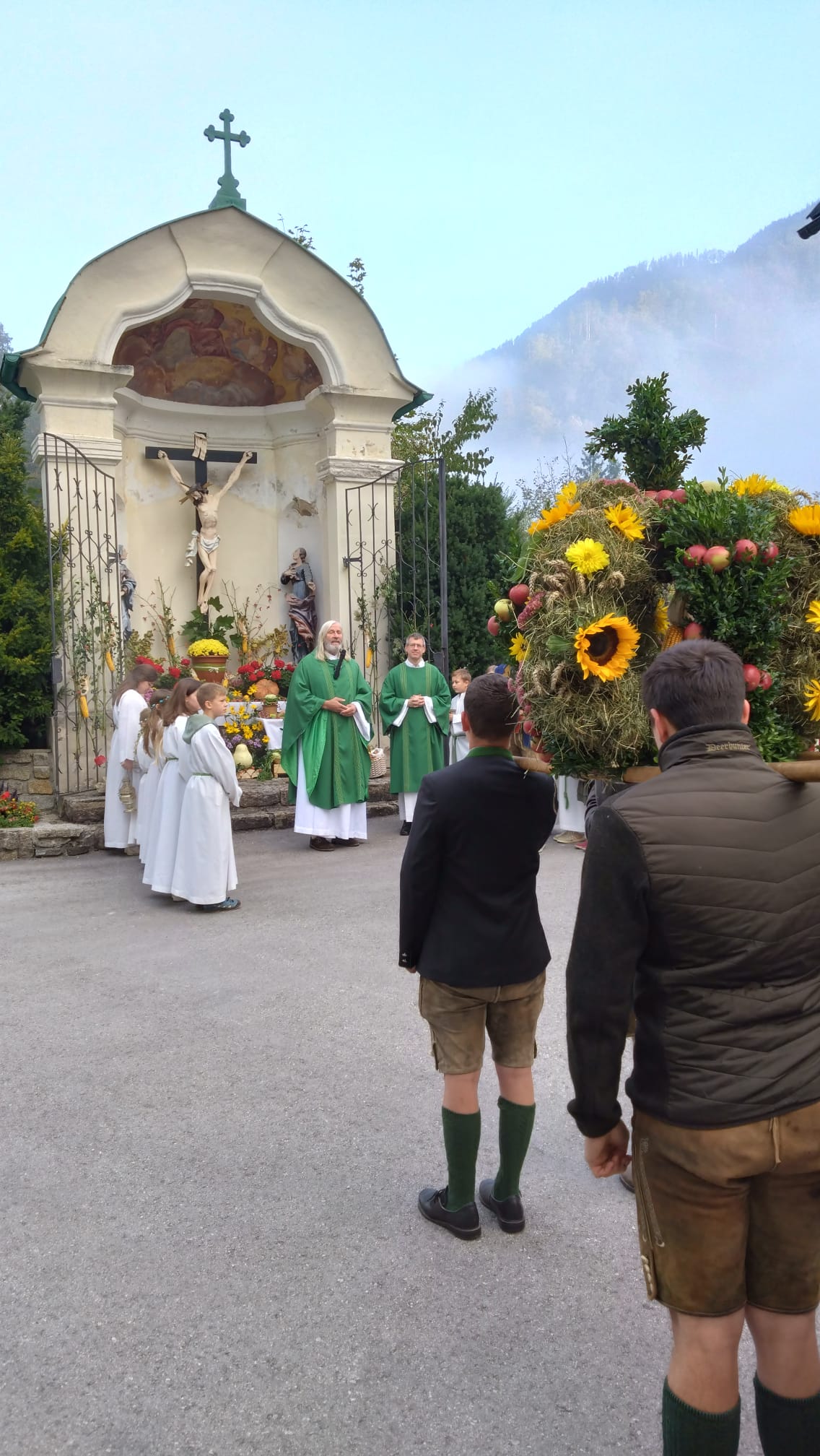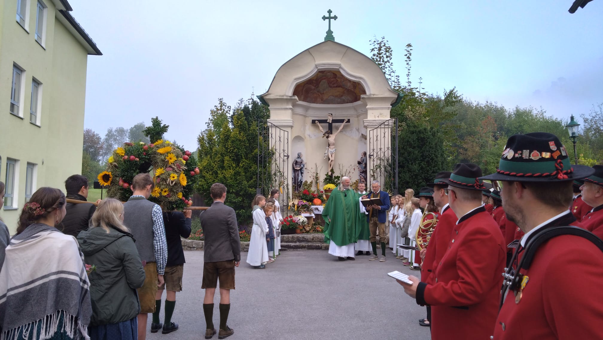 Das Erntedankfest der Pfarrgemeinde umrahmten wir mit. Mit der Segnung der Erntegaben beim Schulkreuz und der Prozession zur Kirche und der anschließenden Agape erfreuten wir die Kirchgeher mit unseren Klängen.