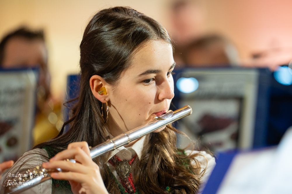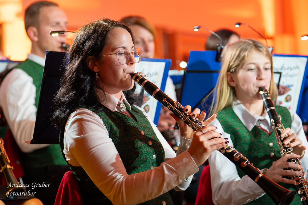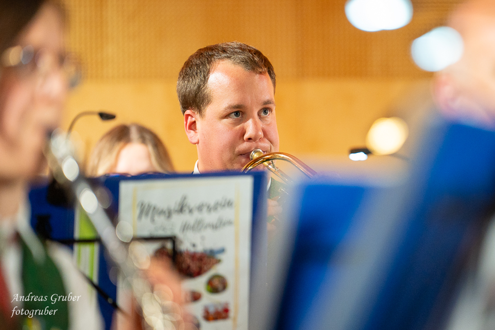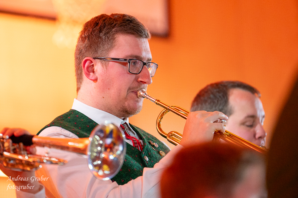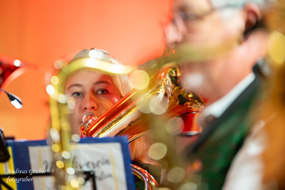 Zahlreiche Ehrengäste und Musikkollegen der Nachbarkapellen, sowie unzählige Freunde der Blasmusik erlebten im restlos gefüllten Turnsaal der Neuen Mittelschule einen wunderbaren und abwechslungsreichen Konzertabend. Unverwechselbar und überaus charmant führten Sandra und Katharina gespickt mit Humor und Wissenswerten durch das Programm. Im Rahmen des Abends ehrte unsere Obfrau Sabine langjährige aktive Mitglieder. Unser Kapellmeister David sorgte gemeinsam mit seiner Stellvertreterin Ina für ein dynamisches Programm. Wir eröffneten unseren Jahreshöhepunkt mit dem „Fliegermarsch“. Mit „Of Fairies and Elves“ folgte unser Pflichtstück aus der heurigen Konzertwertung. Mit "Big B", dem Solostück für drei Tuben setzte David einen Kracher ins Programm, von dem unser Publikum mit Begeisterung eine Zugabe forderte. Natürlich hatte unser Kapellmeister auch in diesem Jahr eine Eigenkomposition mit dabei, eine Polka namens "Voi wurscht", gemeinsam mit Georg Mandl komponiert. Ina dirigierte Musik aus dem allseits bekannten und beliebten Kinofilm "Home Alone - Kevin allein zuhause". "African Symphonie" setzte den Schlusspunkt der ersten Konzerthälfte. Klassisch starteten wir nach unserem Jugendorchester mit "Arioso" von Johann Sebastian Bach in die zweite Konzerthälfte. Als musikalischen Höhepunkt nach der Pause führten wir "Troja", unser Selbstwahlstück der Konzertwertung, auf. "Schena Mensch", ein Hit der Gruppe Folkshilfe, beendete unser Konzert. Nach kräftigem Applaus gabs natürlich eine Zugabe, „ABBA - When all is said and done“. Den traditionellen Schlusspunkt des Weihnachtskonzertes setzte ein kräftiges Prosit Neujahr gefolgt vom „Radetzky-Marsch“. An dieser Stelle ein riesengroßes Dankeschön an alle, die uns beim Weihnachtskonzert unterstützt haben.