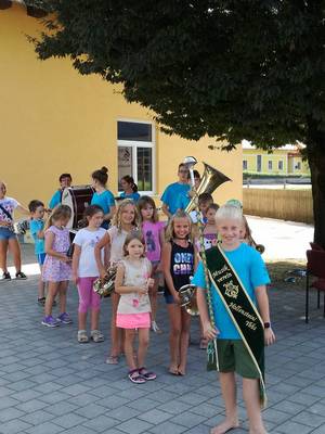 Wir durften uns auch im Jahr 2017 über den Besuch zahlreicher musikinteressierter Kinder beim Sommerprogramm Spitzhiatl Äktschn freuen. Es wurde gebastelt, gemalt, gesungen, marschiert und natürlich musiziert.