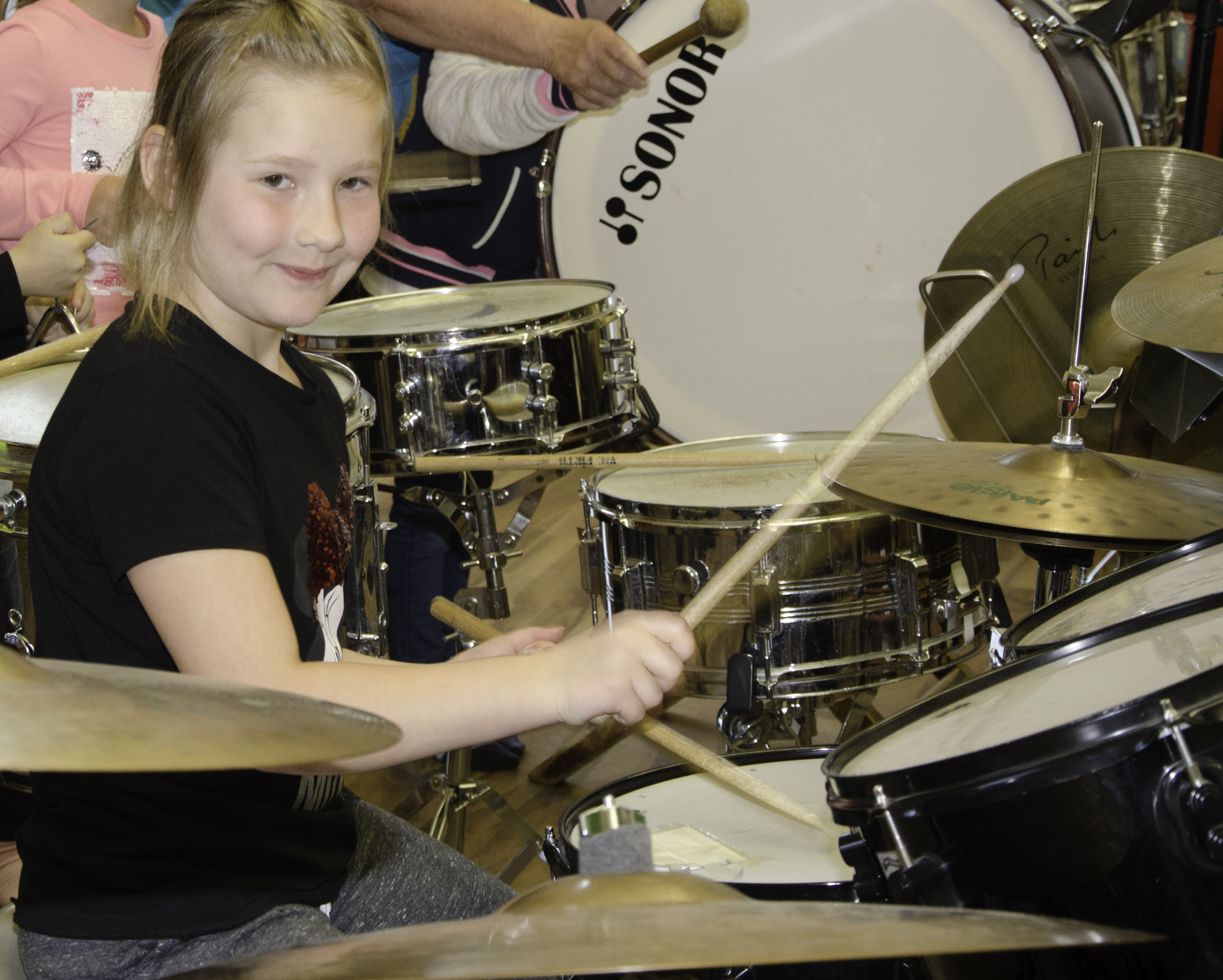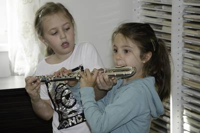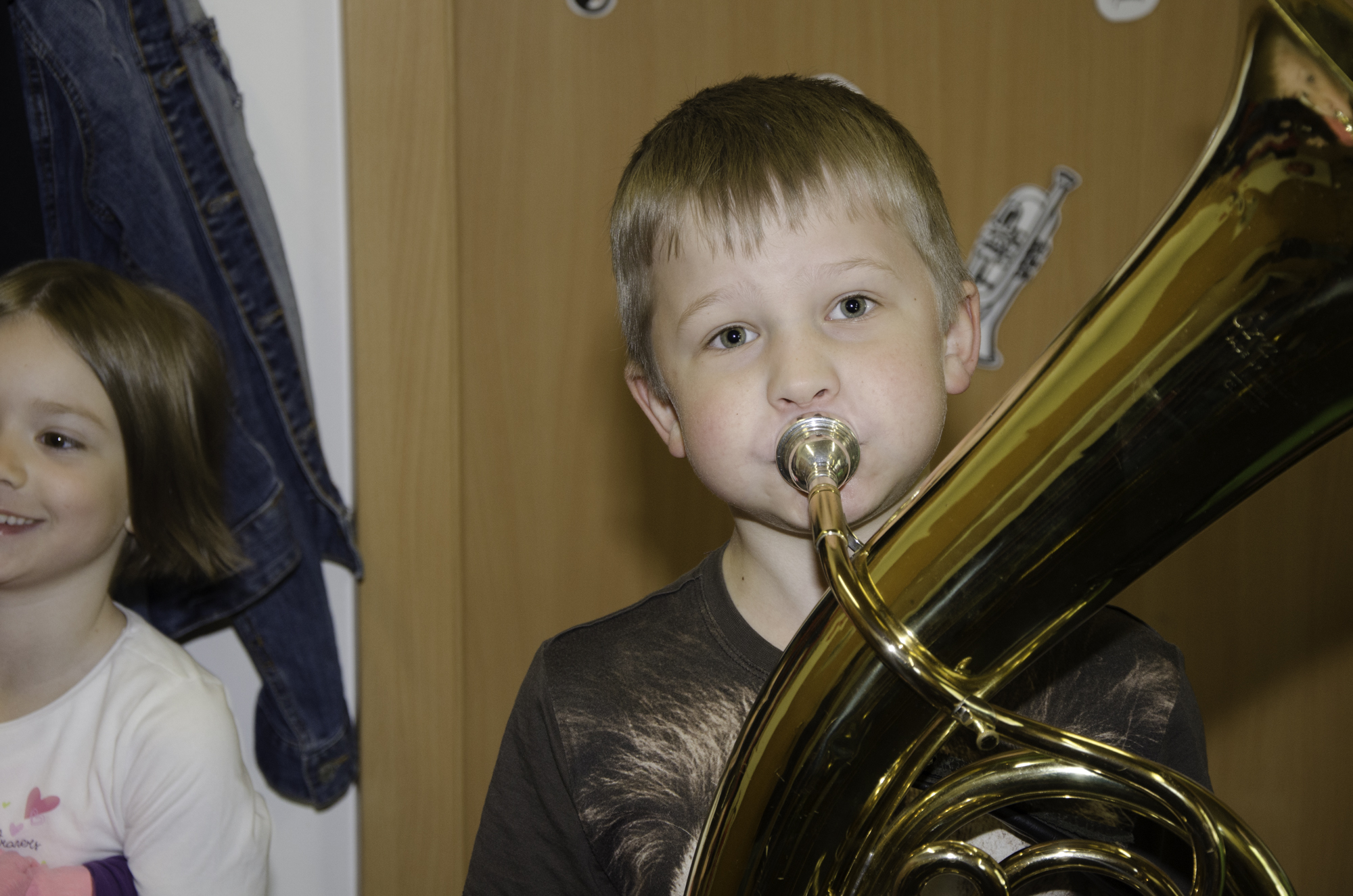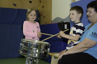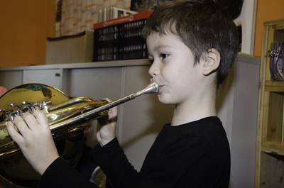 Volksschule und Kindergarten probieren Instrumente
