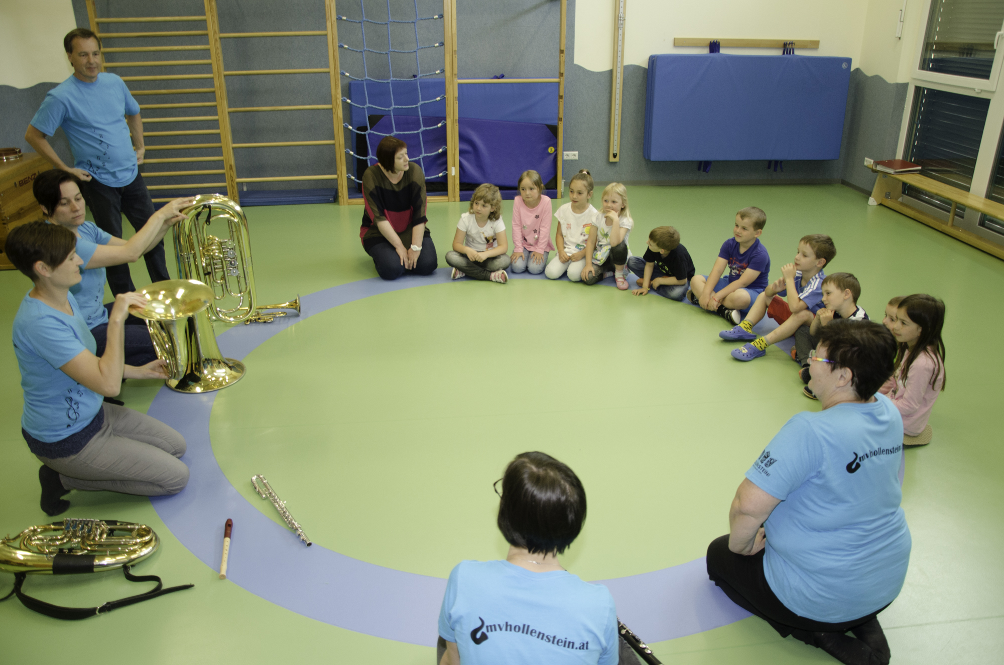 Im Anschluss durften wir in den Kindergarten Hollenstein um den Schulanfängern zu zeigen, welche Instrumente beim Musikverein Hollenstein gespielt werden.