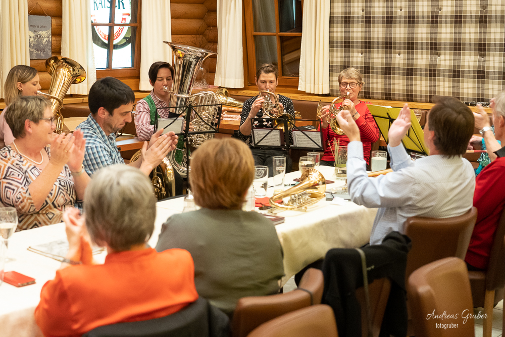 Unsere Schriftführerin Christina Schnabler berichtete über ein musikalisch intensives Vorjahr. Obfrau Sabine Brandner lieferte uns den nicht weniger ruhigen Ausblick auf das laufende Jahr mit einigen Highlights. Bei der durchgeführten Ergänzungswahl kamen Carina Jagersberger, Tina Schneiber, Lukas Mitterhauser und Patricia Sonnleithner neu in den Vereinsvorstand. Traurig nahmen wir zur Kenntnis, dass unser Schlagzeuger Florian Kefer sich ein Jahr Pause nimmt. Sabine berichtet uns von bis zu acht möglichen Neuzugängen zur Kapelle. Fünf Jungmusiker werden uns ab der nächsten Probe mit ihrem Talent unterstützen. Zwei Damen kommen aus der Babypause zurück und auf eine Verstärkung dürfen wir auch im Trompetenregister hoffen. Ein großes Danke verbunden mit einem kräftigen Applaus gab es für unsere Kordula Muthsam. Ohne ihr würde vieles nicht so einfach funktionieren. Bgm. Manuela Zebenholzer dankte uns für unser kulturelles Engagement im Dorf. Vor allem auch der gelungen vereinsinternen Nachwuchsarbeit.