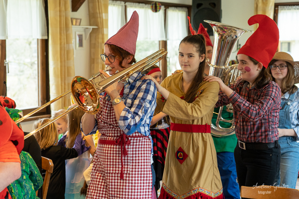 Es war wieder ein toller Kinderfasching im Gasthaus Dornleiten. Danke an Karin für deine perfekte Organisation und danke an alle, die mitgeholfen haben. Musikalisch gestaltete unser "Hea´Haufn" wunderbar den fröhlichen Nachmittag. Sigrid Berginc freute sich über ihren Gewinn vom Schätzspiel, einer köstlichen Zwergenwaldtorte von Konditormeister Hannes Schwarzlmüller. Zu erraten gabs die Anzahl der Noten, die unser Jochen, also unser erster Trompeter, beim Radetzky-Marsch zu spielen hat. Insgesamt sind es 699 Töne.