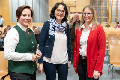 Danke, dass wir mit unserem Konzert in die Schule dürfen: NMS-Dir. Erika Reisinger, Bgm. Manuela Zebenholzer