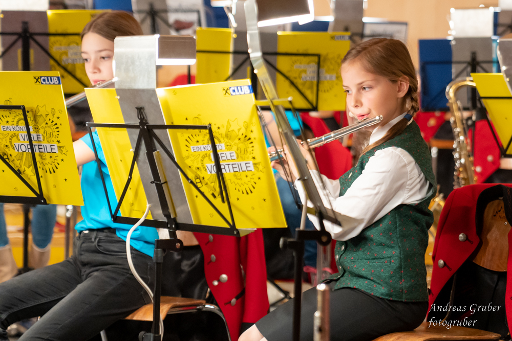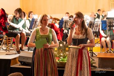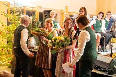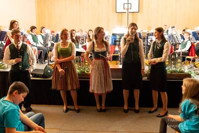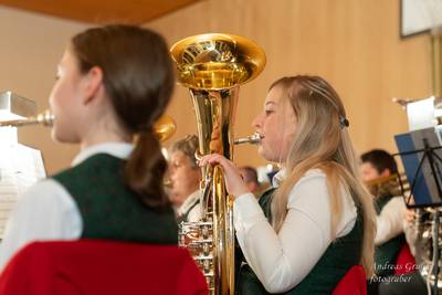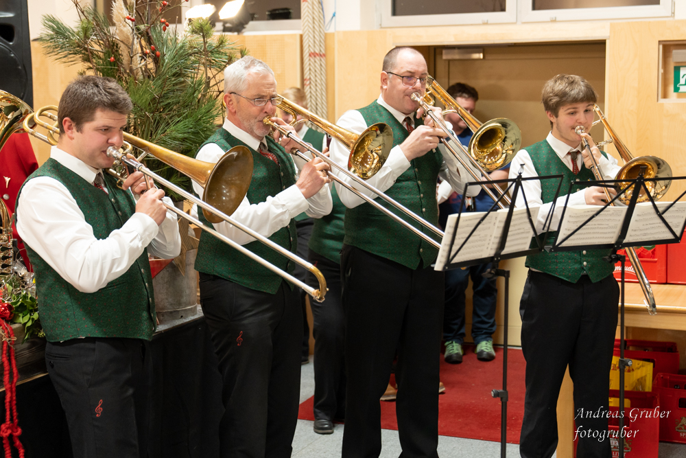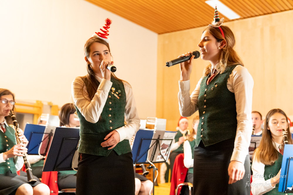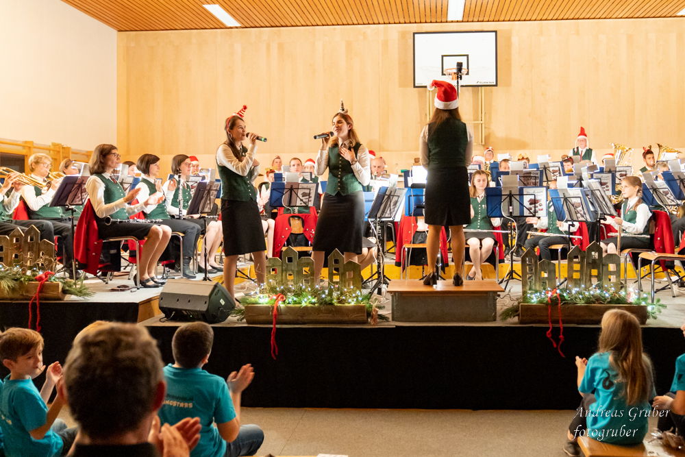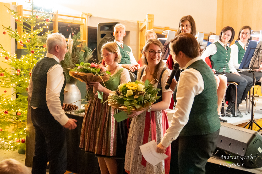 Mit "Carmina Burana" einem überaus imposanten Werk von Karl Orff starteten wir zu unserem traditionellem Termin ins Weihnachtskonzert. Geleitet von David und Ina boten wir herrliche Kompositionen aus vielen Bereichen der Musik. Unsere beiden Wertungsstücke "Monumentum" und "Enjoy the Music", mit denen wir bei der heurigen Konzertwertung einen großartigen Erfolg einspielten, gehörten natürlich dazu. Ina führte uns über den Atlantik zuerst nach Nordamerika mit "Der mit dem Wolf tanzt" in die unendlichen Weiten der Prärie. Mit "Gabriel´ s Oboe", von Ina für Klarinette arrangiert, ging unsere Reise solistisch nach Südamerika. Unser Posaunenquartett holte das Publikum aus der Pause zurück zum begeisternden Auftritt unseres Jugendorchesters. Der "Kaiserin Sissi Marsch" eröffnete den zweiten Teil unseres Konzertabends. Mit der überaus flotten "Fanynka Polka" besuchten wir unsere böhmisch-mährischen Nachbarn. Danach flanierten wir genüsslich mit "Les Champs Elysees" über die Pariser Prachtstraße. Mit dem aktuellen Hit "Merry Christmas" gesungen von unseren Flötistinnen Tina und Carina und arrangiert von Kapellmeister David beendeten wir unser Konzert. Als Zugabe hatten wir "Best of Mark Forster", ebenfalls von David für uns arrangiert, vorbereitet. Mit einem kräftigen "Prosit Neujahr" und dem "Radetzky Marsch" war es dann leider schon vorbei. Ein herzliches Dankeschön an alle, die uns fürs Gelingen unseres Konzertes unterstützt haben. Ein riesiges Danke an unser Publikum für euer Kommen und euren großartigen Applaus!