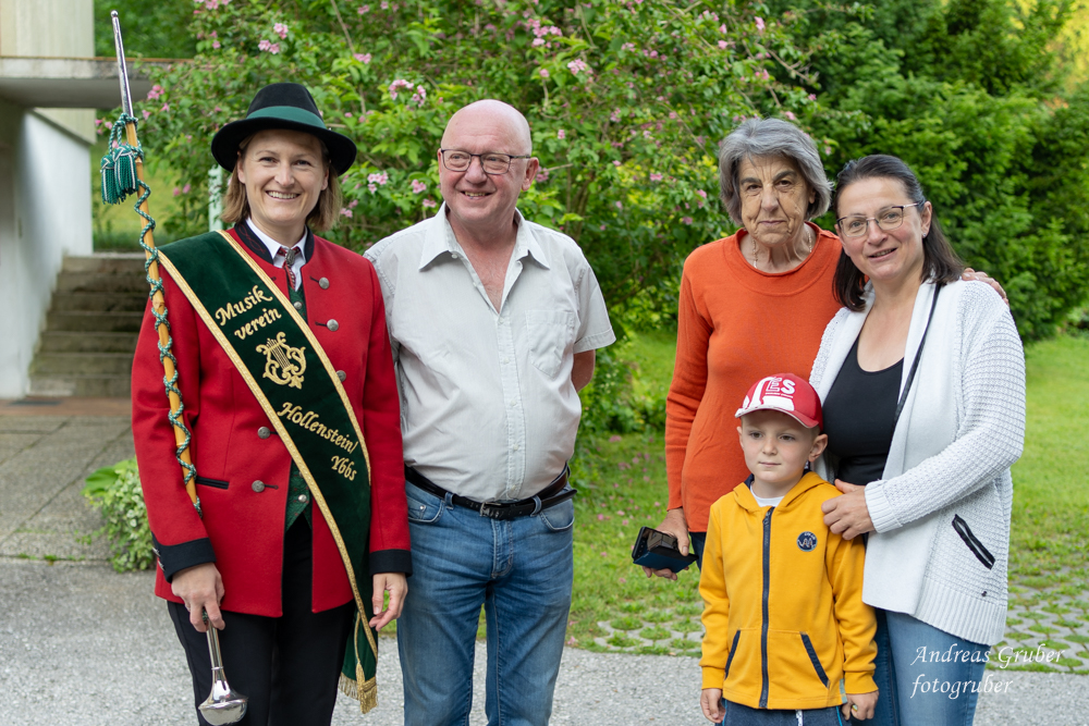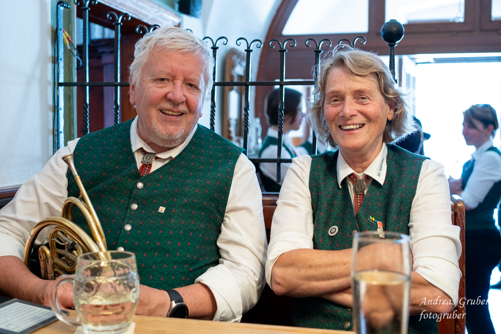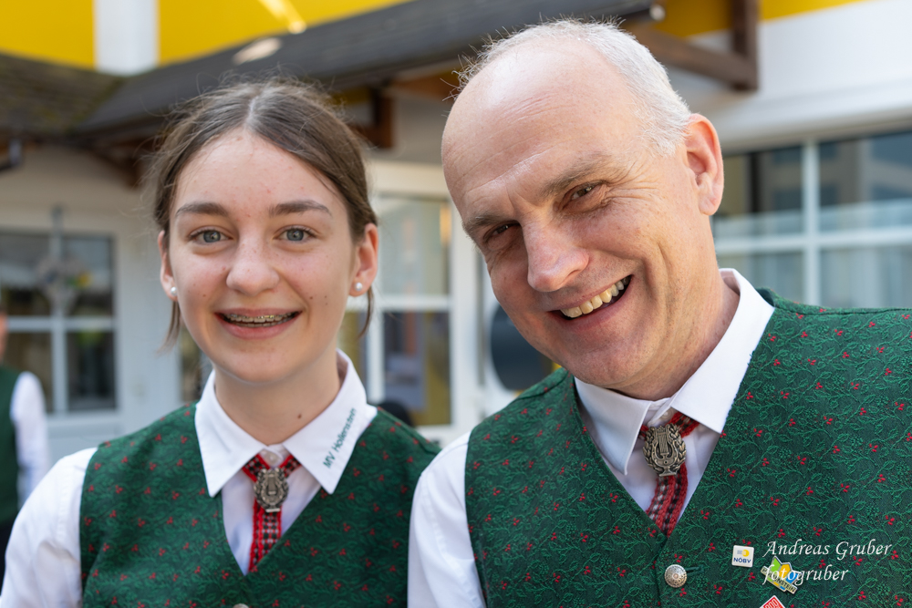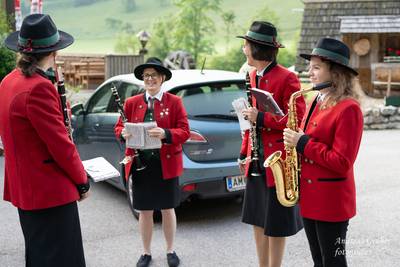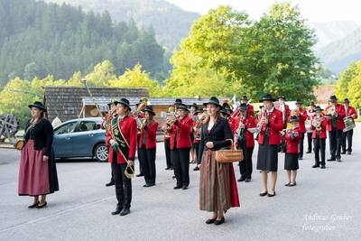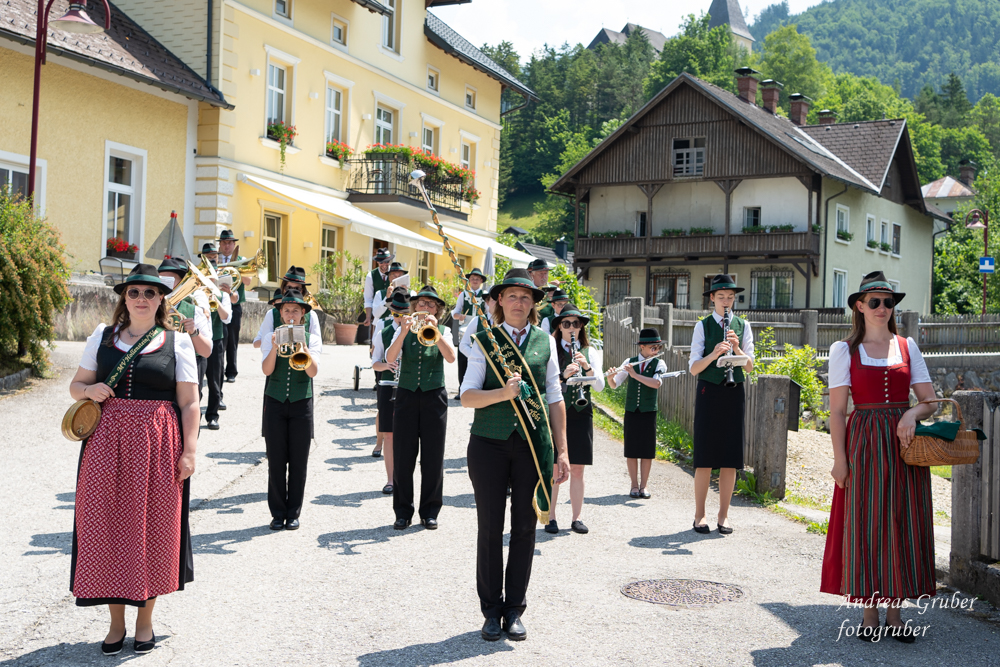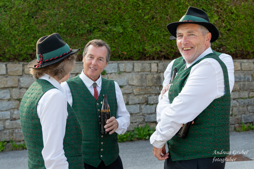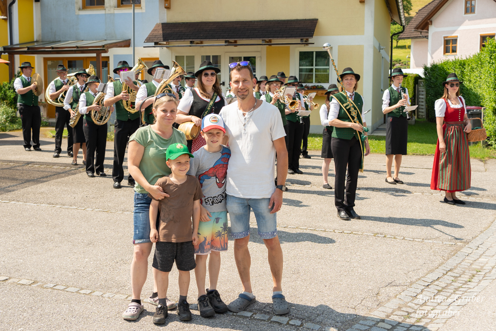 Mit flotter Marschmusik weckten wir das Dorf auf. Am frühen Morgen freuten wir uns über die Einladung zum Frühstück. Franz Irninger und sein Team verwöhnten uns im Gasthaus Dornleiten – Dorfstube mit einem kräftigen Frühstück. Gut gestärkt gings anschließend auf den kilometerlangen Weg durch die Gemeinde. Unser Ziel war die Einladung zum Mittagessen bei Franziska und Andreas Kronsteiner. Zwischendurch gab es zahlreiche Halts mit willkommenen Erfrischungen. Wir bedanken uns bei Familie Hubert Mandl und Josef Schnabler für die erste Rast. Eine kurze Pause gönnten wir uns bei Maria Anna Jagersberger und Ernst Fohringer. Bgm. Manuela Zebenholzer freute sich mit ihrer Familie über unseren morgendlichen musikalischen Besuch. Bei unserer Klarinettistin Barbara gabs eine Einladung auf Getränke. Ein großer Dank von uns Musikanten gilt Martina und Max Geyerlechner. Hier gab es neben den kühlen Erfrischungen auch eine kräftige Jause. Beim Dorfplatzwirt Dominik Fellner Gasthaus Osterberger durften wir natürlich nicht vorbeimarschieren. Eine überaus willkommene Rast in der kühlen Gaststube. Den vorletzten Stopp gabs dann bei Vizebgm. Walter Holzknecht und unserm ehemaligen Kapellmeister Christian Gruber. Der Musikverein, allen voran Obfraustv. Herbert Schenk und Stabführerin Michaela Steineck, danken für die herzliche Bewirtung und die großartige Unterstützung beim traditionellen Weckruf. Ein großes Danke auch an unsere Feuerwehr für die Begleitung bei unserem Marsch.