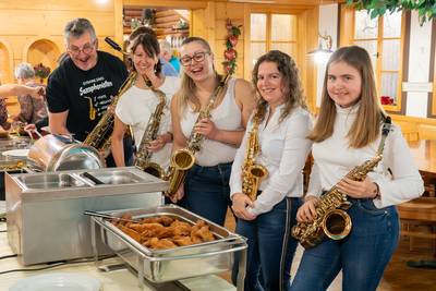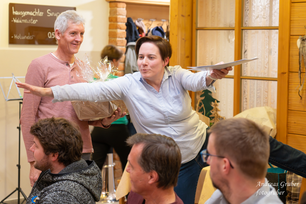 Unsere sechs Marketenderinnen überraschten uns anlässlich der 203. Jahreshauptversammlung mit einem coolen und unterhaltsam getexteten Song. Obfrau Sabine begrüßte im Gasthof Jagersberger uns Aktiven, sowie auch unterstützende Mitglieder. Unsere Schriftführerin Christina ließ uns das abgelaufene, auftrittsintensive Jahr Revue passieren. Kapellmeister David blickte auf ein musikalisch erfolgreiches Jahr zurück. David betonte, dass die Kapelle musikalisch immer besser werde. Einen wesentlichen Beitrag dafür bringen neben der konzentrierten Probenarbeit auch zahlreiche kleine Ensembles, welche sich in den letzten Jahren innerhalb des Vereines formiert haben. David ließ mit der Ankündigung aufhorchen, bei der heurigen Konzertwertung in Stufe C anzutreten. Sabine gab einen Ausblick auf Ausrückungen und Seminare im kommenden Jahr: „Auch wenn wir heuer vorhaben weniger oft aufzutreten, langweilig wird es bestimmt nicht“. Sabine dankte der Kapelle für den super Zusammenhalt und auch ihrem Team im Vorstand, welches zahlreiche Aufgaben übernommen hat und sie dadurch dementsprechend sehr gut entlastete. Ein großer Dank erging an Patricia Sonnleithner, Lukas Mitterhauser und Wolfgang Filsmair, welche aus dem Vorstand des Musikvereines zurücktraten. Sabine überreichte Wolfgang für seine Jahrzehnte lange zuverlässige Arbeit im Vorstand und als gewissenhafter Archivar die goldene Ehrennadel des NÖ Blasmusikverbandes. Bgm. Manuela Zebenholzer zeigte gegenüber der Musik große Wertschätzung und dankte für viele Highlights, wie den gemeinsamen Ausflug zur Partnergemeinde Siegenburg: „Ich bin gerne bei euch und blicke mit großer Freude auf ein neues musikalisches Jahr“. Die Generalversammlung umrahmten unsere kleinen Ensembles.