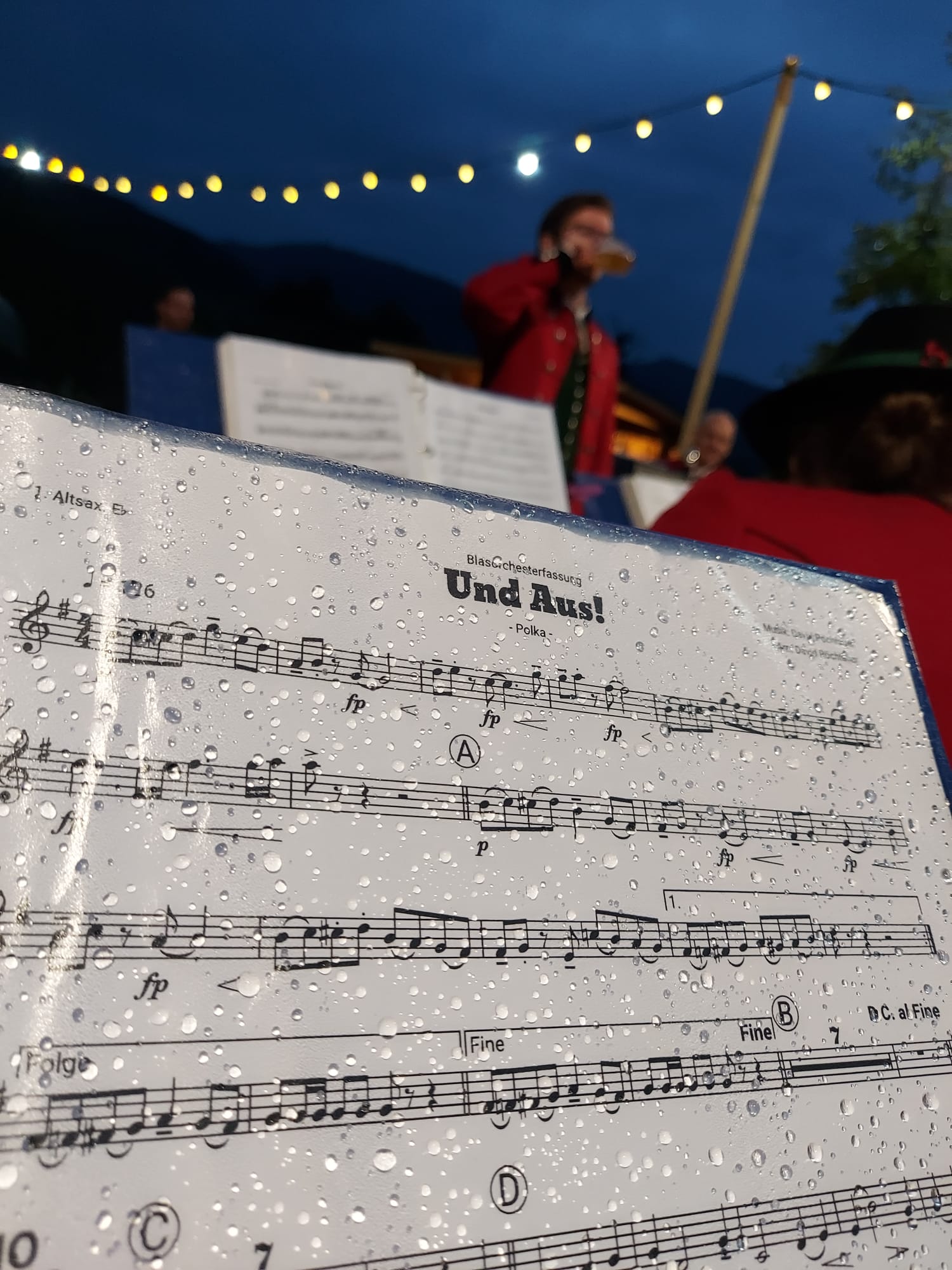 Wir spielten beim Dämmerschoppen der Trachtenmusikkapelle Harmonie Weyer. Beim Eckerbauer nähe der Pfarrkirche verwandelten die Weyrer Musiker rund um Obfrau Petra Leeb den Platz zu einer gemütlichen Sonnwendfeuerlocation. Vor uns spielte die Weyrer Musik auf. Leider machte das Wetter einem vergnüglichen Abend mit viel Blasmusik einen Strich durch die Rechnung und wir mussten unseren Auftritt nach einer Stunde leider schon beenden.