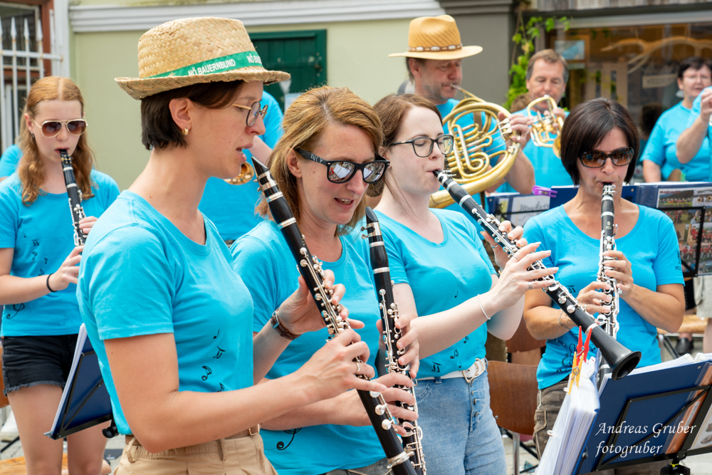 Nach weit über einem Jahr an Verschiebungen haben wir es endlich geschafft. Unser Wunschkonzert fand am Dorfplatz statt. Nach unzähligen Termin- und Wetterproblemen ging es endlich los. Obfrau Sabine begrüßte die nahezu unzählig vielen Freunde der unserer Musik vorm Dorfwirt Gasthaus Osterberger. Mit einem abwechslungsreichen und unterhaltsamen Programm erfüllte wir die zahlreich eingetroffenen Wünsche. Zu den beliebtesten Musikstücken zählten „Abba – Gold“ und natürlich der „Böhmische Traum“. Verschiedene Musiker aus den einzelnen Registern führten durch den musikalischen Vormittag und stellten dabei ihre Musikkolleginnen vor.