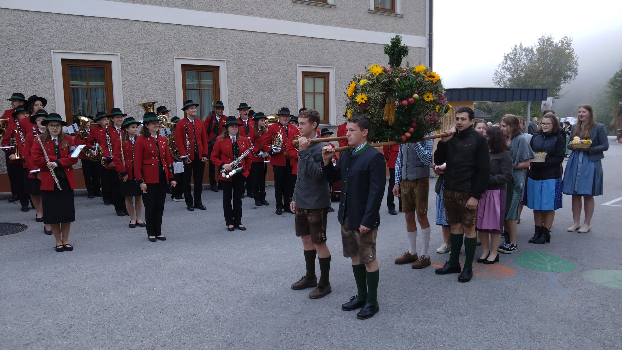 Das Erntedankfest der Pfarrgemeinde umrahmten wir mit. Mit der Segnung der Erntegaben beim Schulkreuz und der Prozession zur Kirche und der anschließenden Agape erfreuten wir die Kirchgeher mit unseren Klängen.