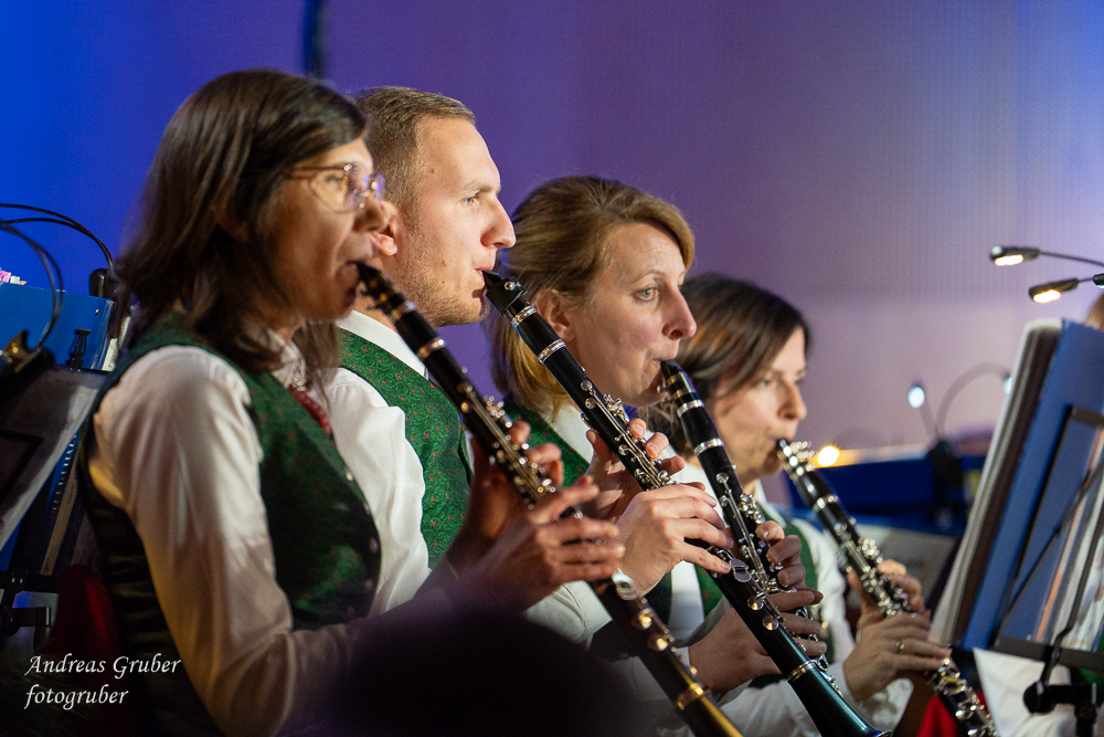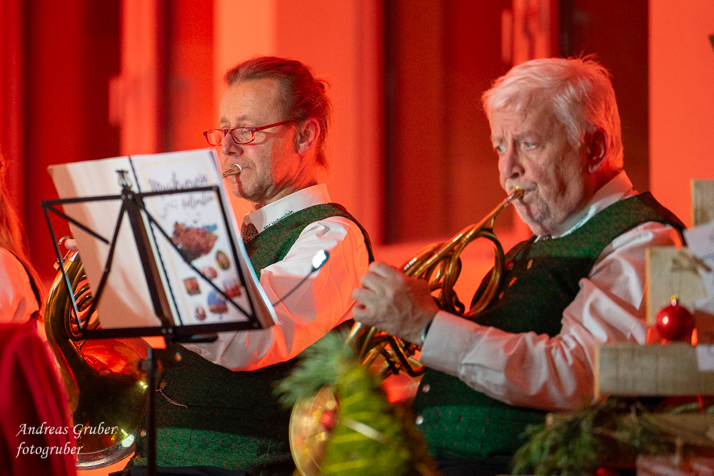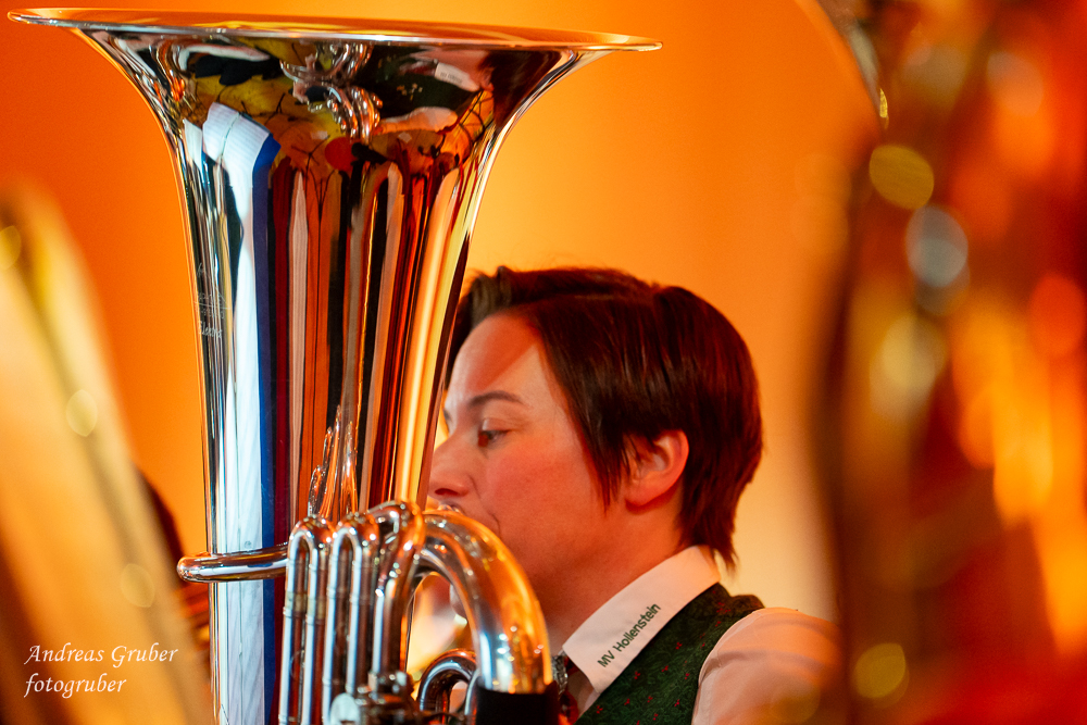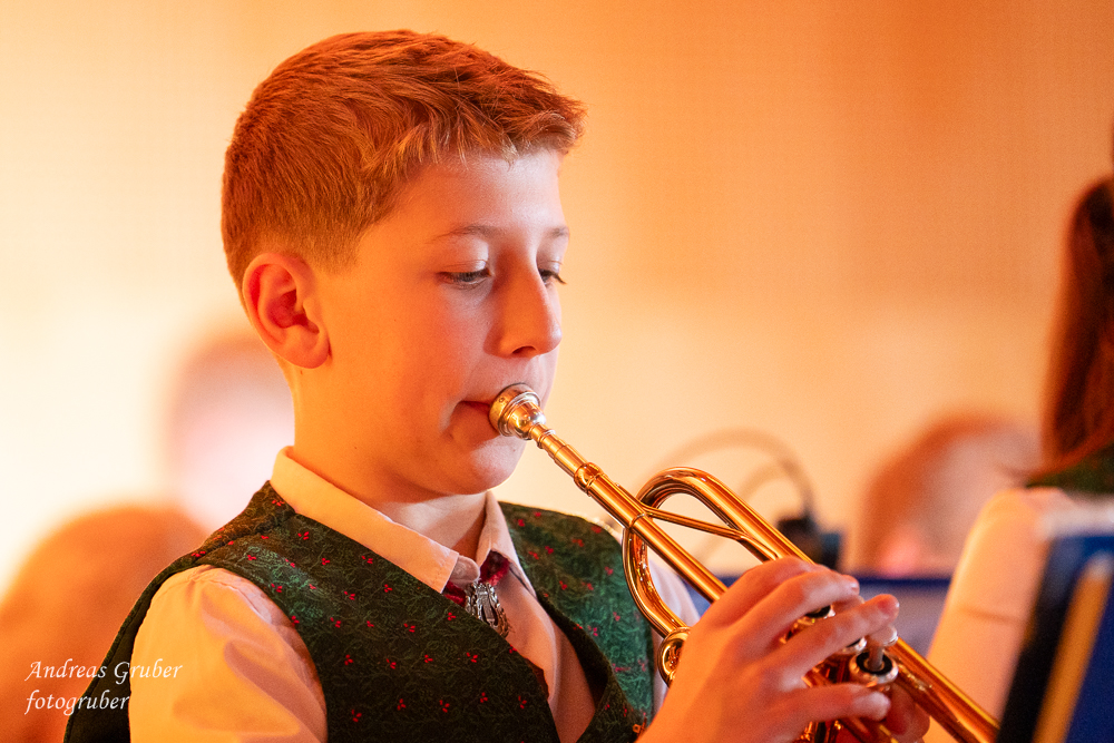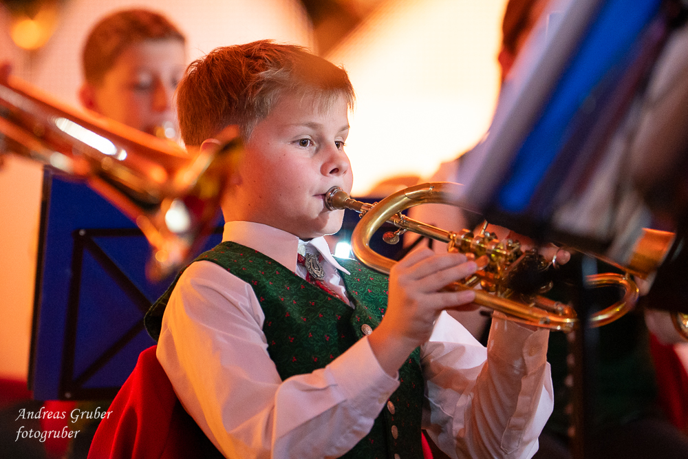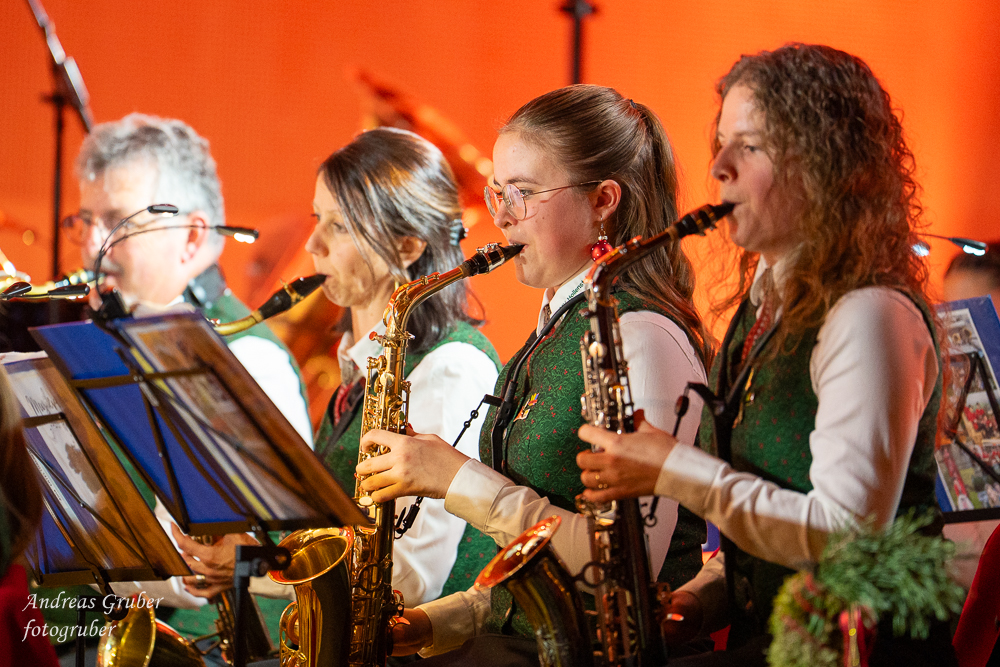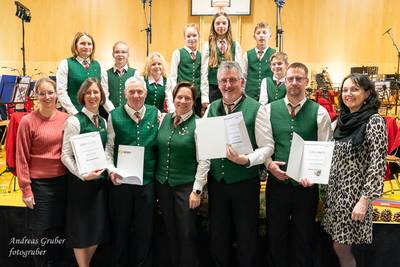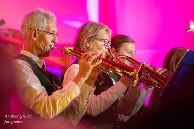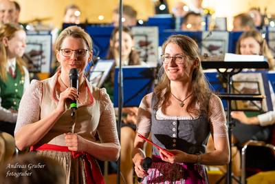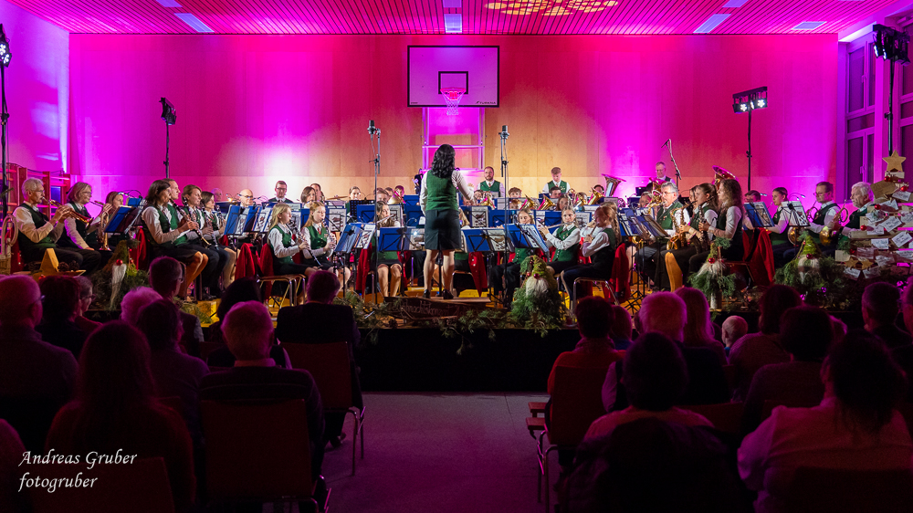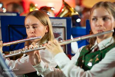 Zahlreiche Ehrengäste und Musikkollegen der Nachbarkapellen, sowie unzählige Freunde der Blasmusik erlebten im restlos gefüllten Turnsaal der Neuen Mittelschule einen wunderbaren und abwechslungsreichen Konzertabend. Unverwechselbar und überaus charmant führten Sandra und Katharina gespickt mit Humor und Wissenswerten durch das Programm. Im Rahmen des Abends ehrte unsere Obfrau Sabine langjährige aktive Mitglieder. Unser Kapellmeister David sorgte gemeinsam mit seiner Stellvertreterin Ina für ein dynamisches Programm. Wir eröffneten unseren Jahreshöhepunkt mit dem „Fliegermarsch“. Mit „Of Fairies and Elves“ folgte unser Pflichtstück aus der heurigen Konzertwertung. Mit "Big B", dem Solostück für drei Tuben setzte David einen Kracher ins Programm, von dem unser Publikum mit Begeisterung eine Zugabe forderte. Natürlich hatte unser Kapellmeister auch in diesem Jahr eine Eigenkomposition mit dabei, eine Polka namens "Voi wurscht", gemeinsam mit Georg Mandl komponiert. Ina dirigierte Musik aus dem allseits bekannten und beliebten Kinofilm "Home Alone - Kevin allein zuhause". "African Symphonie" setzte den Schlusspunkt der ersten Konzerthälfte. Klassisch starteten wir nach unserem Jugendorchester mit "Arioso" von Johann Sebastian Bach in die zweite Konzerthälfte. Als musikalischen Höhepunkt nach der Pause führten wir "Troja", unser Selbstwahlstück der Konzertwertung, auf. "Schena Mensch", ein Hit der Gruppe Folkshilfe, beendete unser Konzert. Nach kräftigem Applaus gabs natürlich eine Zugabe, „ABBA - When all is said and done“. Den traditionellen Schlusspunkt des Weihnachtskonzertes setzte ein kräftiges Prosit Neujahr gefolgt vom „Radetzky-Marsch“. An dieser Stelle ein riesengroßes Dankeschön an alle, die uns beim Weihnachtskonzert unterstützt haben.