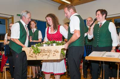 Danach ging es ab zu den Gastfamilien, dort hieß es umziehen um dann möglichst rasch im Gemeindesaal wieder zusammenzutreffen. Von 19 bis 21 Uhr durften wir bei einem Dämmerschoppen mit 38 Musikern unser Können unter Beweis stellen. Die wundersame Vermehrung werden sie vielleicht denken? Nein, unsere Anna Pichler hat keine Mühen gescheut und ist direkt von ihrem Praktikum in Südtirol nach Stanz gekommen.