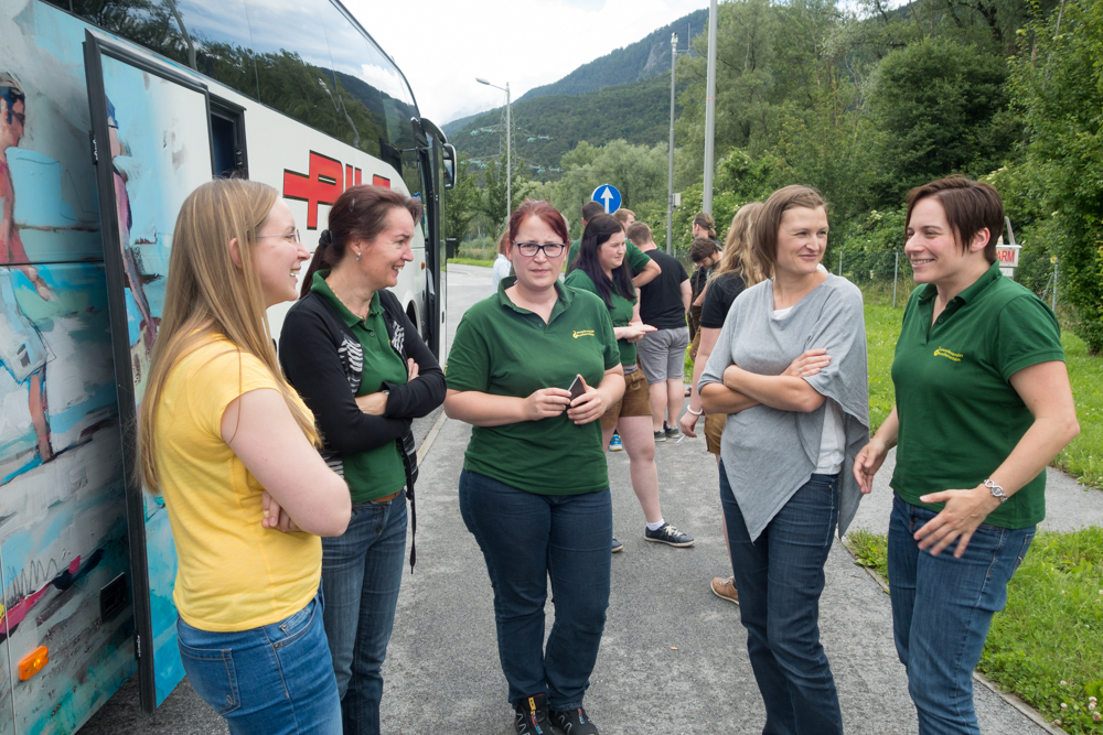 Wir fuhren am Samstag um 7.30 (zur Freude unserer Obfrau pünktlichst) vom Musikheim in Hollenstein weg. Mit 37 Musikern war unsere Kapelle gut aufgestellt und die Fahrt bis wir dann um 16 Uhr in Stanz ankamen wurde uns beinahe ununterbrochen durch Live-Musik (von Sepp, Flo, Steindler, Reini, Sophie,.....) versüßt. Die Musiker des MV Stanz haben uns mit einer Jause empfangen, die direkt in der Besichtigung einer Schnaps-Brennerei mündete. Nachdem Stanz bei ca 600 Einwohnern ungefähr 60 Brennerein vorweisen kann, war klar, dass es auch unter den Musikanten echte Könner auf diesem Gebiet gibt. Der eine oder andere Hollensteiner Musiker hat in diesem Zusammenhang auch gleich an die Reserven zuhause gedacht und sich mit so machen Fläschchen selbst eine Freude gemacht.
