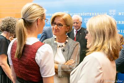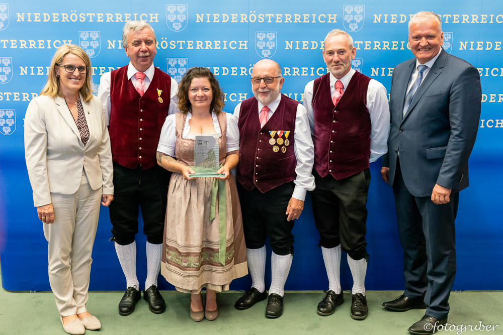 Auf Einladung unserer Landeshauptfrau Johanna Mikl-Leitner gab es einen kleinen Ausflug ins Landhaus nach St. Pölten. Im Rahmen einer stimmungsvollen Feier bekamen wir den Ehrenpreis in Silber überreicht. Begleitet hat uns unsere Bgm. Manuela Zebenholzer. Im Landhaus trafen wir unsere Kollegen vom Musikverein St. Georgen am Reith mit Kapellmeister Siegfried Rabl, Obmann Franz Hager, Siegfried Aigner und Bgm. Birgit Krifter.