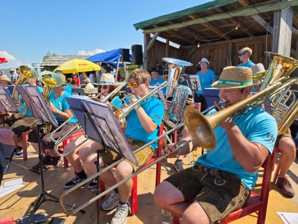 Wir waren dabei, beim 61. Siebenhüttenalmfest. Wir umrahmten die Almmesse beim Gipfelkreuz mit der „Missa St. Florian“. Im Anschluss gings runter zum Festgelände, wo wir den Frühschoppen gestalteten. Mit einem tollen abwechslungsreichen Programm begeisterte unsere Kapellmeisterin Ina mit uns das Publikum und sorgte damit für ein super positives Feedback. Ein großer Dank von uns allen ergeht an Christine Baron, für die Aushilfe als Marketenderin. Ein großer Dank auch an die Organisatoren für die hervorragende Versorgung mit Getränken während unseres Auftrittes. So war die Hitze auf der Alm leicht zu ertragen.